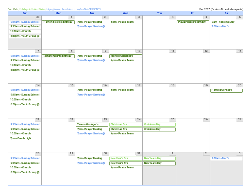 which we provide the eggs for. Dec 19th will be the Noble Township Parade of Lights which we will need cookies and hot-cocoa for. Dec 21st will bring our annual Candlelight Service. This year we are hosting Countrylane and Wolf Lake Baptist Churches as well. Finally there is our annual Taste of Wyoming Saturday Dec 27th at 6:30 pm.